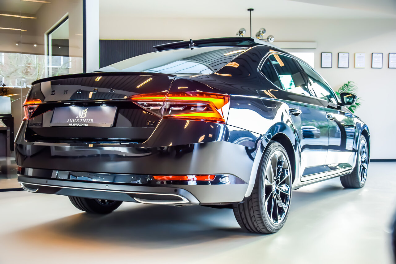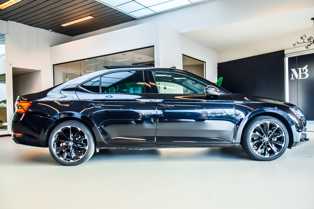 Sportieve en luxueuze Škoda Superb Sportline iV met plug-in hybride aandrijving. Deze wagen combineert krachtige prestaties met zuinig en deels elektrisch rijden.